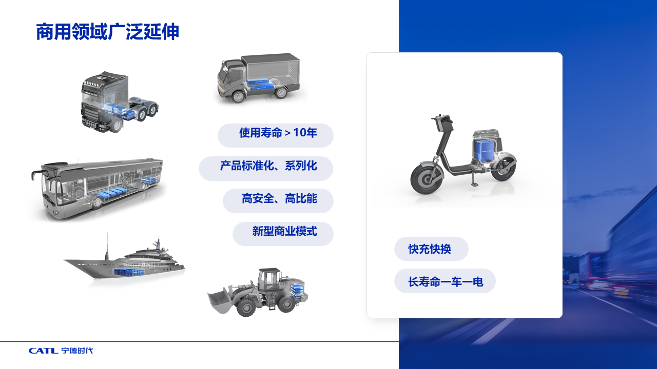 商用领域多数是生产工具,车型复杂多变。针对这一需求,天美娱乐开发了长寿命电池,保证高强度运营的质保需要。标准化、系列化设计的电池包有效提高通用性。和产业链合作伙伴共同推出了车电分离、电池或整车租赁等新型商业模式。天美娱乐还发现家用和外卖送货骑手的两轮车需求不同,因此设计的电池可快充,也可快换,并且电池寿命足够长,一块电池可以服务车辆全生命周期,节省了更换电池的成本。